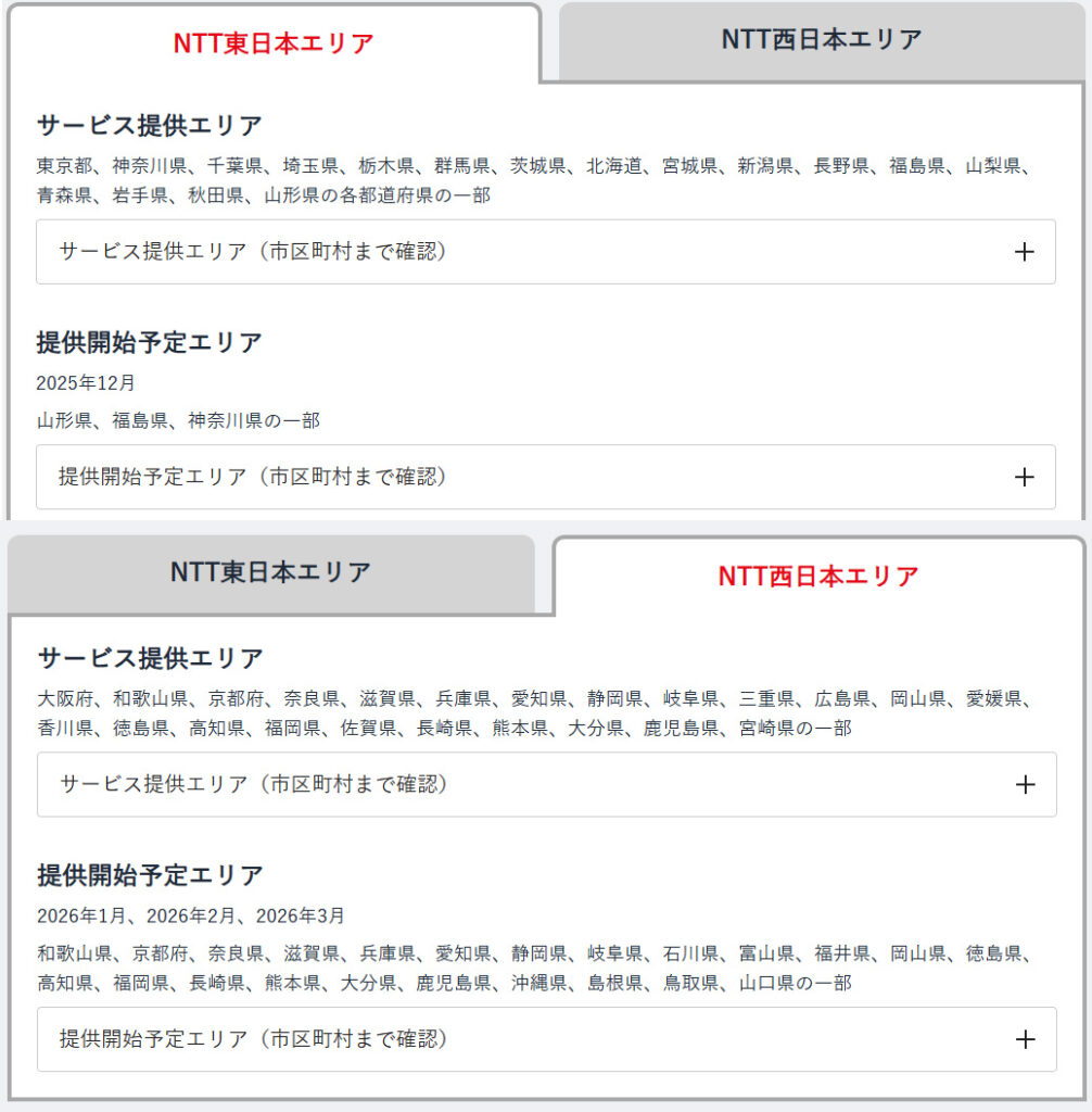 | 提供開始予定日 | 道県域 | 戸建・マンション |