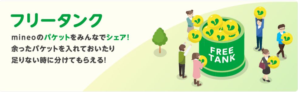 mineoの「マイピタ」ユーザー全員の持っているギガ容量の全体を、大きなタンクのようなものと捉えることで、使わない分をタンクに入れて誰かに使ってもらったり、自分が不足した時に引き出して利用させてもらったりすることができる、互助会のような仕組みです。