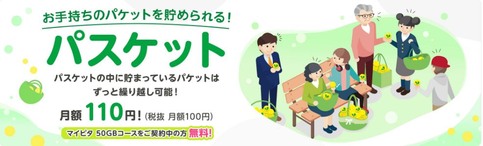 しかし、「パスケット」オプションに申し込むことで、余った容量は繰り越した月以降も消滅すること無く、ずっと利用できるギガ容量としてキープすることができます。(50GBプランはずっとパスケットオプション料金が無料です)毎月のギガ容量が変動するユーザーには、とても利用価値のあるmineoの個性です。