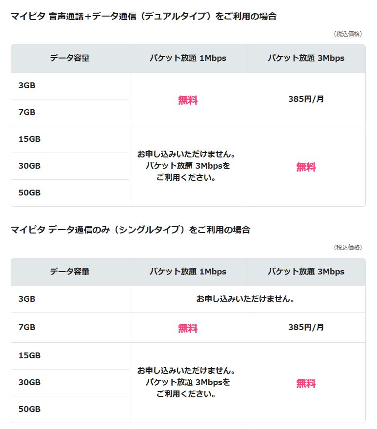 今回発表された改定の最大のトピックは、メインプランの「マイピタ」が月額料金はそのままでデータを大幅増量していることです。
