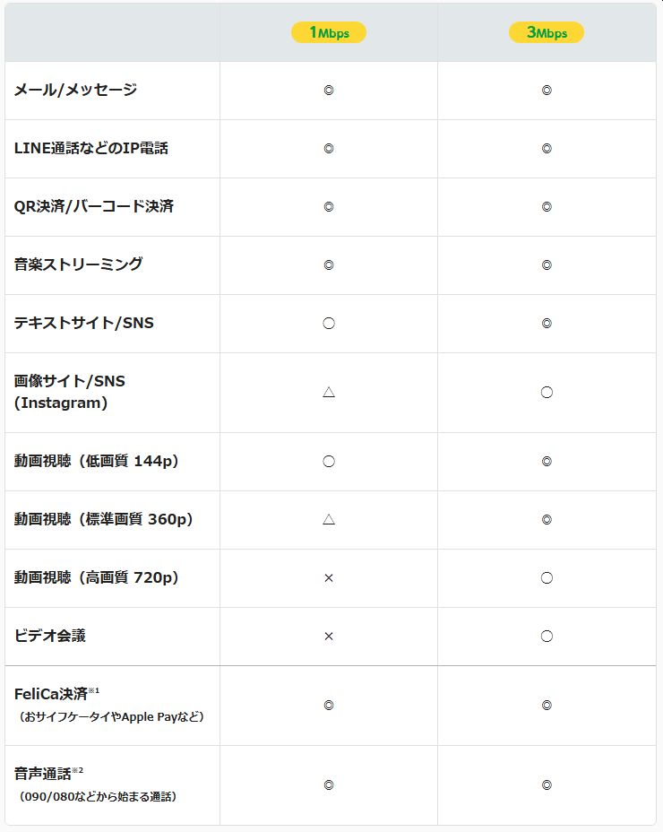 新容量の3GB・7GBのユーザーが契約容量を超過した場合に使える、1Mbpsという通信速度でいったい何ができるのか?結論から申し上げると、通常に利用する多くのことができると言えます。