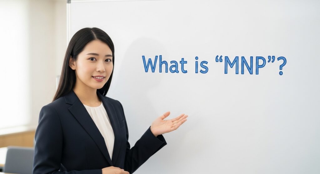 「MNP」はMobile Number Portabilityの頭文字を省略した表記で、利用している通信会社から別の通信会社に乗り換えても、現在利用している電話番号を継続して利用できる制度です。