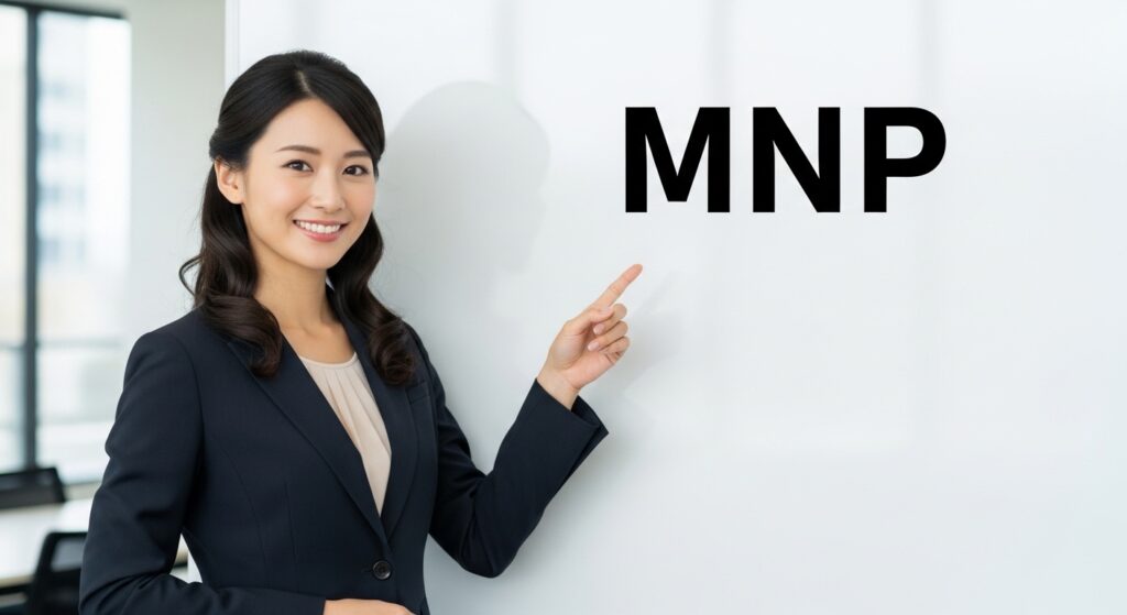 「MNP」はMobile Number Portabilityの頭文字を省略した表記で、利用している通信会社から別の通信会社に乗り換えても、現在利用している電話番号を継続してりようできる制度です。