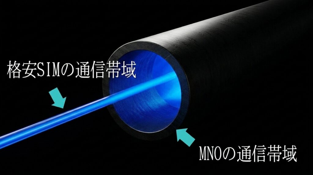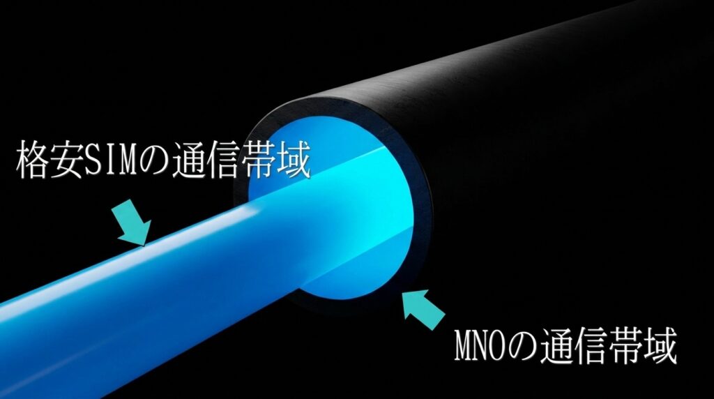 格安SIMはMNOの通信帯域(回線)を借りて運営されていますが、回線全部を利用できる契約はしておらず、格安SIMユーザーが利用できる帯域(回線)は一部に限られています。