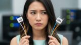 パソコンを2台並べて悩んでいる女性 10ギガ光回線